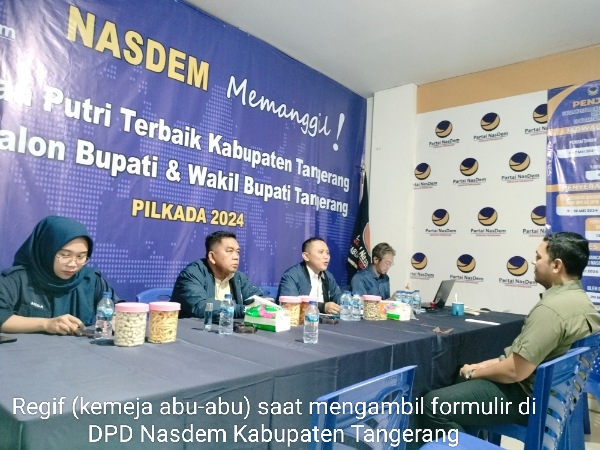 Komarudin datang mengambil Formulir diwakili Regif staf honorer Pemprov Banten dan diterima tim penjaringan kepala daerah DPD Nasdem Kabupaten Tangerang.