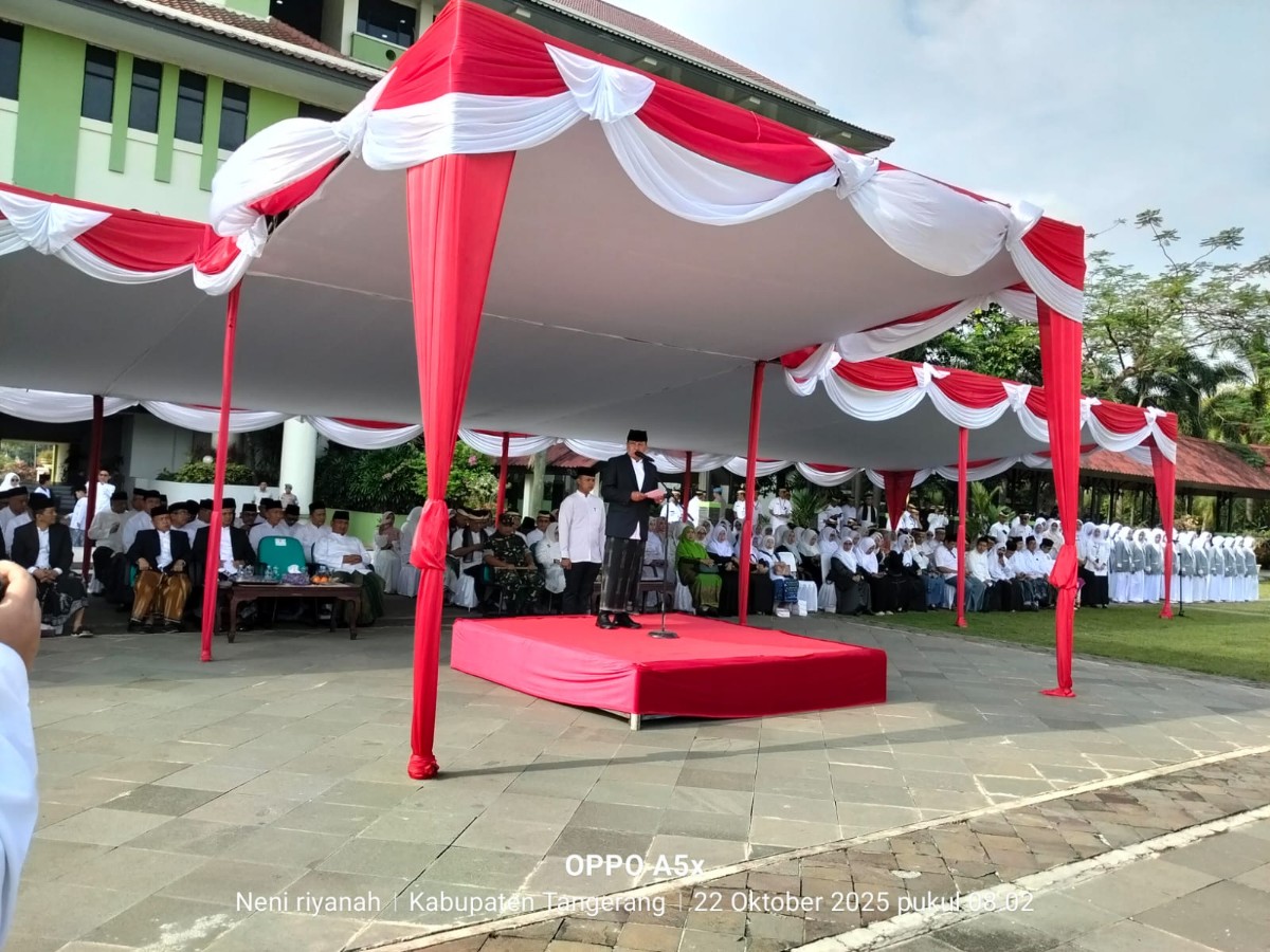 Peringatan HSN tahun ini mengusung tema “Mengawal Indonesia Merdeka Menuju Peradaban Dunia.” Acara berlangsung meriah dan dihadiri oleh Bupati Tangerang Moch. Maesal Rasyied, Wakil Bupati Intan Nurul Hikmah, Kepala Kantor Kemenag Kabupaten Tangerang H. Akhmad Jubaedi, Kasubag TU H. Moch. Iqro, jajaran Forkopimda, serta para tokoh agama dan masyarakat.